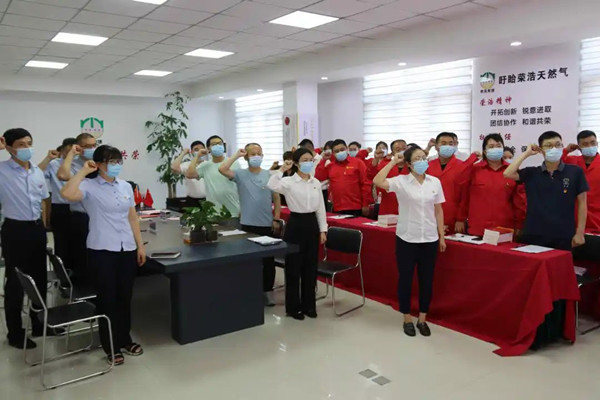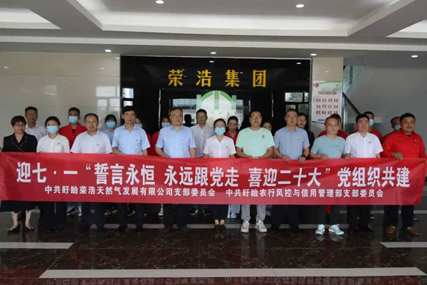 值此“七一”來臨之際,為深化銀企合作,積極構(gòu)建“資源共享、優(yōu)勢互補、互相促進、共同提高”的黨建工作新格局,充分展現(xiàn)黨建引領(lǐng)促發(fā)展的作用,踐行榮浩集團“共創(chuàng)、共贏、共榮”的價值觀,6月22日,中共盱眙榮浩天然氣發(fā)展有限公司支部委員會與中共中國農(nóng)業(yè)銀行盱眙支行風(fēng)控與信用管理部支部委員會聯(lián)合開展“誓言永恒、永遠跟黨走、喜迎二十大”黨建共建主題活動,為七一獻禮。